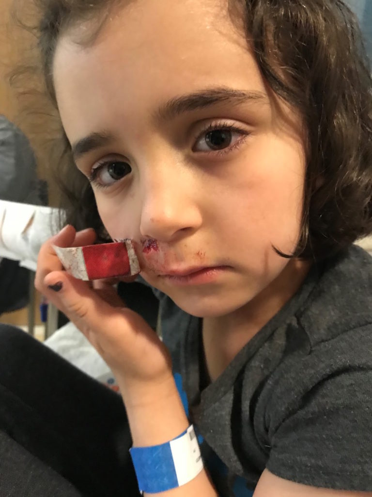 Incident: Katie was bit by a family member’s dog, which caused a laceration to her upper lip.